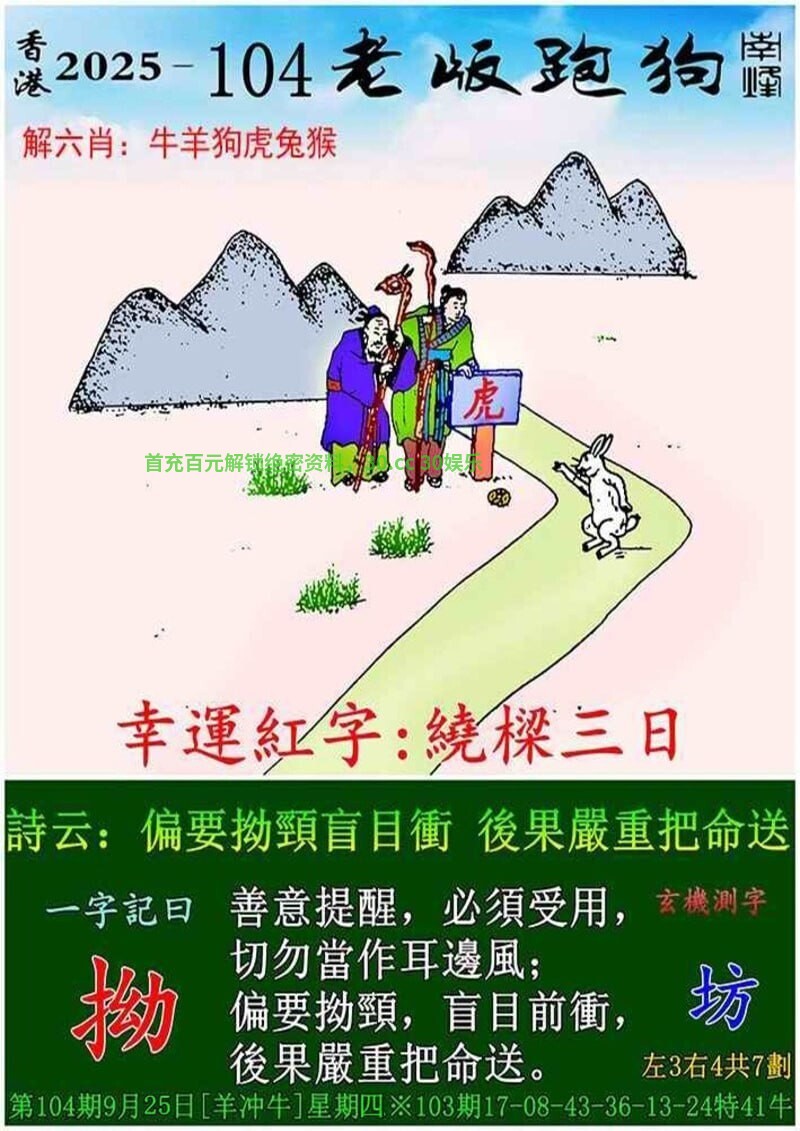 104期:九宫禁三肖【鼠兔牛】开:狗32准