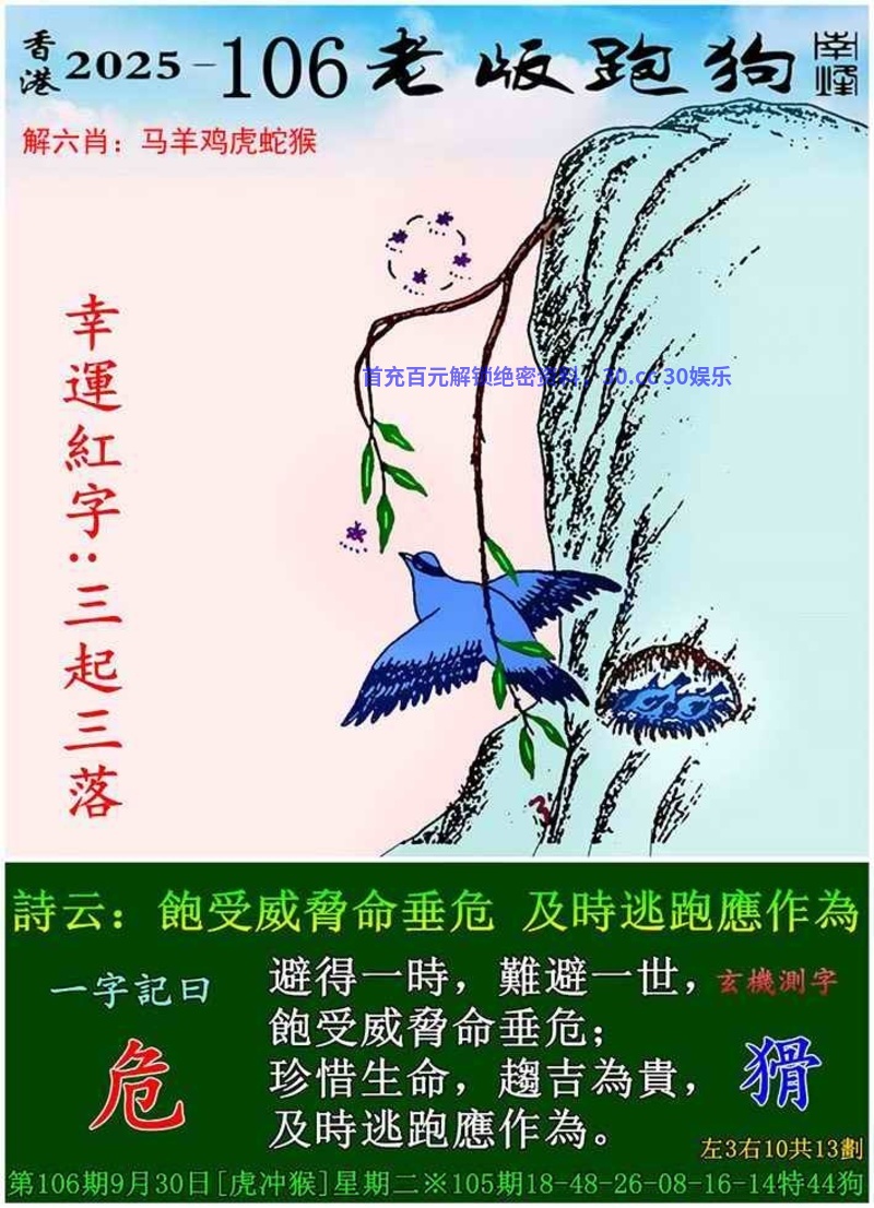 106期:九宫禁三肖【狗牛虎】开:猪43准